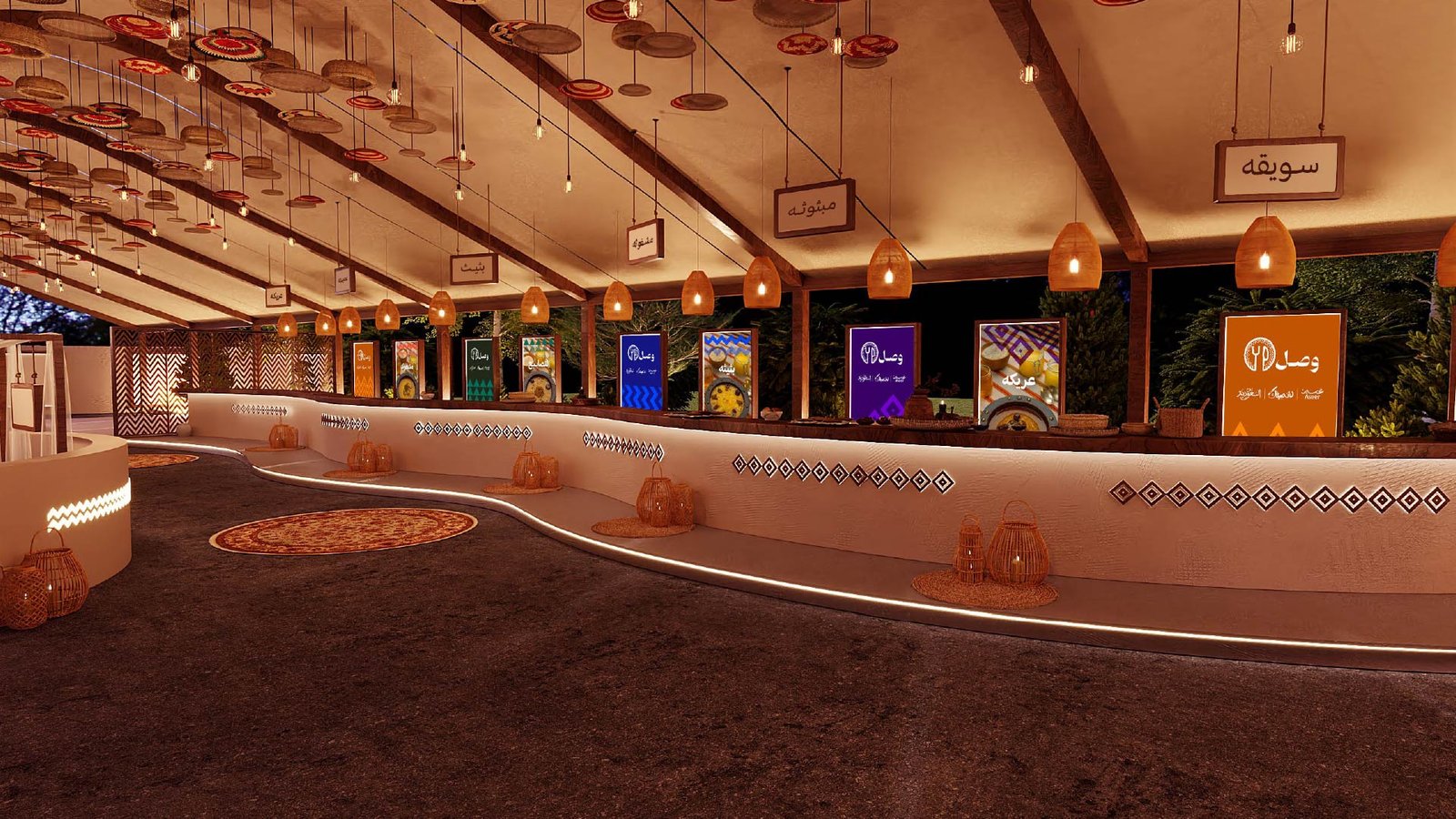 Inspired by Al-Qatt Al-Asiri art, mud-brick architecture, and vibrant Aseer palettes, the festival environment merged tradition with modern functionality. Regional motifs, curated lighting, and immersive décor elements transformed AlMuftaha Village into a living cultural showcase, celebrating heritage through contemporary festival design.