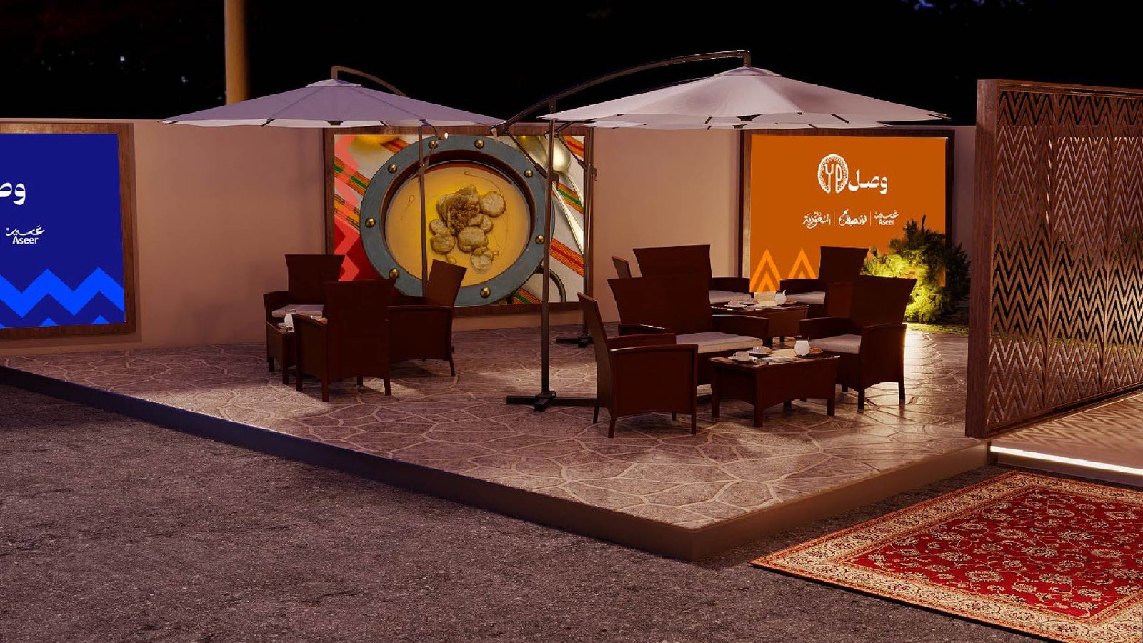 The festival began with vision, not construction. A strong identity was created, rooted in Aseer’s cultural DNA and inspired by Al-Qatt Al-Asiri patterns, bold colors, and traditional geometry. The narrative positioned the festival as a gateway to Aseer’s culinary heritage—blending food, culture, and hospitality into an immersive, family-friendly experience with global appeal. This vision guided every design and communication touchpoint while aligning seamlessly with STA’s national tourism brand.